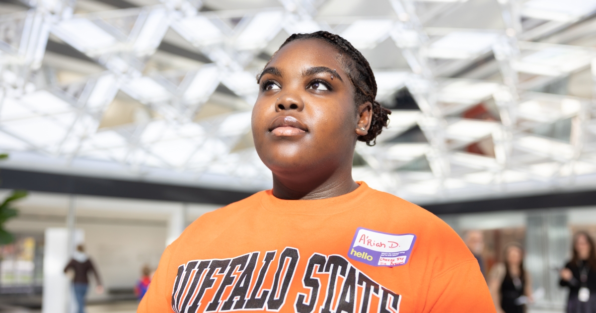 Buffalo State student inside the AKG Art Museum